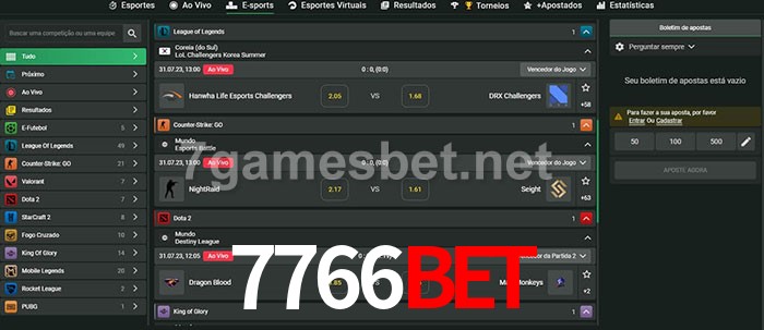 O 7766Bet oferece uma grande seleção de opções de apostas em e-sports com probabilidades competitivas